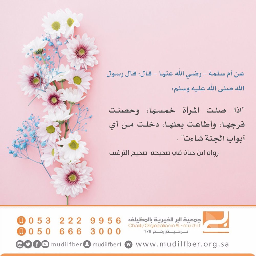 ট ইট র جمعية البر الأهلية بالمظيلف عن أم سلمة رضي الله عنها قال قال رسول الله صلى الله عليه وسلم إذا صلت المرأة خمسها وحصنت فرجها وأطاعت بعلها دخلت من