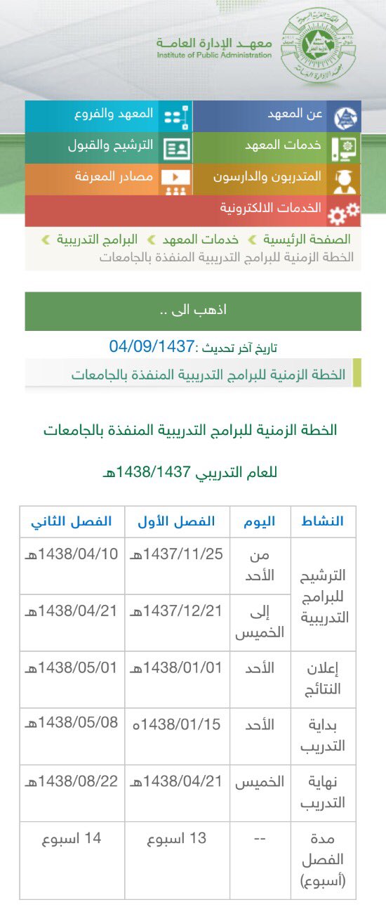 بوابة الموظفين نعود بحذر Twitterren الخطة الزمنية لبرامج معهد الإدارة العامة المنفذة في الجامعات للعام التدريبي 1438 1437هـ