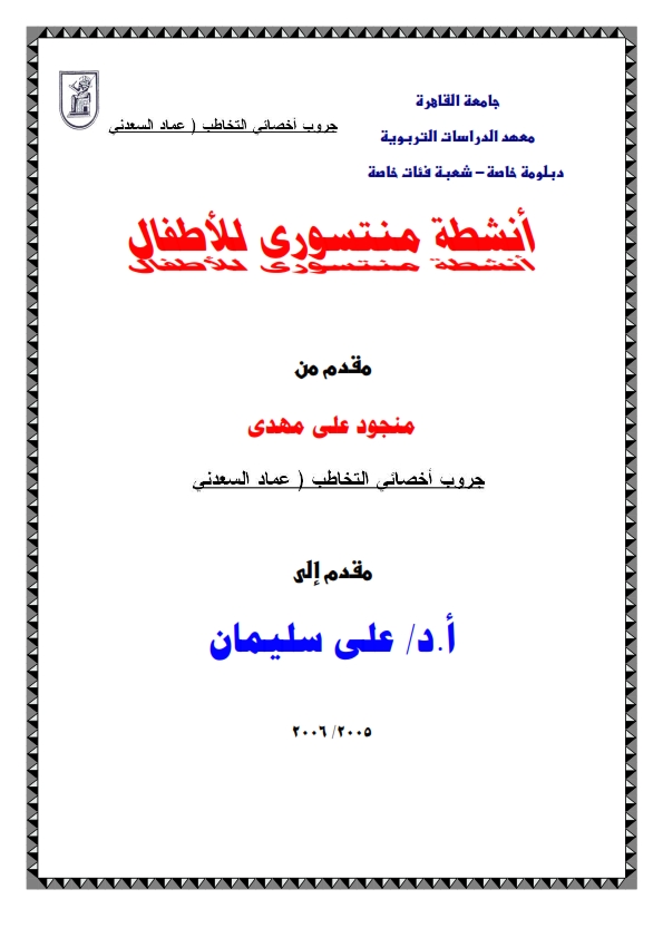 تحميل كتب منتسوري بالعربية تحميل كتاب انشطة منتسورى مترجم للعربية Pdf و بوربوينت